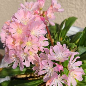 こんにちわ。◕‿◕。 ずっと晴れが続いています、今日も晴天です☀️ 散歩中に見つけたレウイシアのお花💕 家の塀に沢山のレウイシアを掛けられていました。 とても華やかで素敵でした(✿^‿^)
