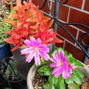 こんにちは👋😃 お昼過ぎから、晴れてきました☀️ 昨夜の雨🌧️🌧️🌧️ 結構激しく降ってました。 風も強くて、心配でしたか、2~3個鉢が倒れていた程度でした😌ホッ 今年1月に購入したレウイシア** 夏越してくれて、花が咲き始めました🌼 可愛いな🥰 後ろは火祭りさんです🤗