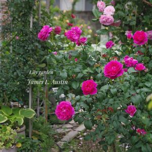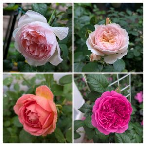 左上から時計回りに シャリファ アスマ エミリーブロンテ ジェームズ L. オースチン ジュビリー セレブレーション エミリー ブロンテは今年お迎えのER。この子だけ軒下にいます。とてもいい香りがします😊