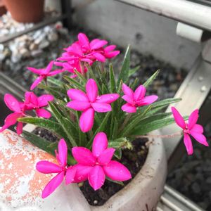 アッツザクラ すっと伸びた茎にピンクの可愛い花が咲きます! 葉に産毛のようなほわほわした毛が生えています。○