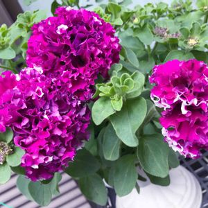我が家のペチュニア達🌼💖見事に紫しかありません🤣💜紫と白の組み合わせが好きで、その色味のペチュニアしかいないけど…いちまつの白がなかなか出ん😅日当たりの問題らしいけど、南向きベランダ、物干し竿は日当たり抜群なはず…💦八重咲きペチュニアがのっぽさんなんだけど、こんなものなのか、選定でこんもりするのやら?💡疑問は尽きないけど、時期が来たらまたバッサリ刈り込みます😁✂️