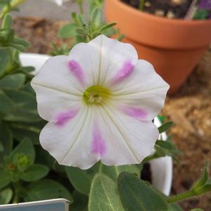 ペチュニア 嵯峨野さくら🌸 最初は白ばかりだったので、一度切り戻し、肥料を置きました♫ やっとピンク多めの花が出てきてくれました😊