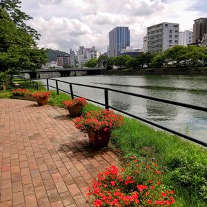 今日のお花 ✨キョウチクトウ✨ 原爆投下後、75年間は草木も生えないといわれた焦土にいち早く咲いた花だそうです❣️ 6月から8月頃にかけて市内のあちらこちらで白やピンクの花が咲いているのをよく見かけます。 復興のシンボルとして市民に親しまれ、<広島市の花 >にも制定されています🌿🌿🌿