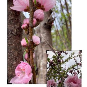 かりんの可愛いお花咲き出しました💗 隣に咲いている桜🌸とのツーショット狙ったけど 二兎を追う者は一兎をも得ずって感じになっちゃいました😅