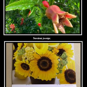 今日のお花 ✿✿ 「ザクロ」 川沿い遊歩道のザクロです♡ そしてもう一枚⬇ 台所の今月のカレンダーは黄色のお花 ✿💛✿ ヒマワリ、カラー、ケイトウ のビタミンカラーでした😊💕