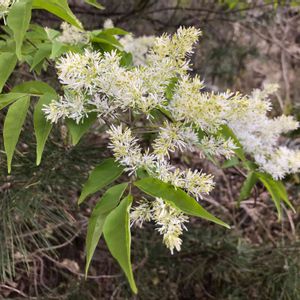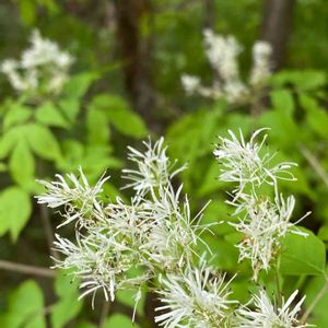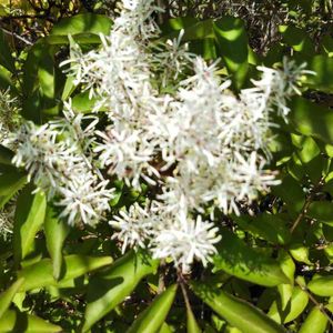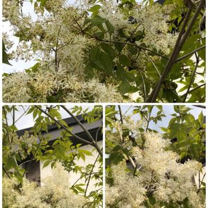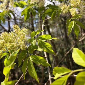 マルバアオダモ (丸葉青梻) モクセイ科 トネリコ属 落葉高木 英名 Ash 別名 コバノトネリコ 🤍白くて細長い小さな花が集まっている🤍 名前の由来 : 雨が降ると樹皮が緑青色になり樹液が青色の塗料になることから アオダモの葉は縁がギザギザしているが、 「マルバ」は葉の縁にギザギザがないことを意味しており、葉が丸いわけではない。別名はホソバアオダモ(細葉青梻) アオダモの木は頑丈で様々なものに利用されています。テニスラケットやスキー板、野球のバットなど。