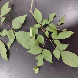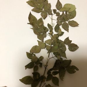 丸葉青梻(マルバアオダモ) モクセイ科トリネコ属の落葉高木。丘陵や山地の尾根など日当たりのよい場所に生える。樹皮は暗灰色で枝は細い。複葉には5~7枚の小葉があり長さ10~20㎝。花期は4~5月。雌雄異株。新枝の先や葉腋から円錐花序を出し多くの白花を開く。果実は翼果で倒披針形。果実を落とすとくるくるとよく回転する。滞空時間を稼ぎ、風に乗って少しでも遠くまで運ばれるための仕組み。 アオダモの枝を水につけると切口から淡い青色の液が出てくるのがアオダモの『青』の由来。『タモ』の由来は、アオダモがクスノキ科の椨の木(タブノキ)に似ているためタブの名前をつけたが、それが訛ってダモになった。他の説として、アオダモは野球のバット、スキーの板などに加工される。木の材質が粘り強く、曲げようとしても折れない。この木を力いっぱい押すと『撓める(たわめる)』ことができる。撓める木が撓む木、タモノキ、タモと変化した。本種は小葉が丸く見えるのでマルバがついた。 よく似たアオダモとの違いは次の通り。 マルバアオダモ ・低地に多い ・葉はやや波打つ ・葉の鋸歯はごく低く全縁になることもある ・基部近くの小葉は小さくて丸みが強い ・冬芽は閉じている アオダモ ・冷涼な山地に生える ・葉にはっきりした鋸歯がある ・小葉は細い楕円形 ・冬芽は無毛で閉じている 出典『葉っぱで見わけ五感で楽しむ樹木図鑑』『樹木の名前』