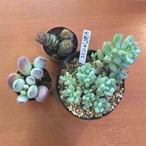 大型パキフィツムとカランコエ ショーガールを鉢に植えました。 GSマルシェat恵比寿ガーデンプレイスのBLUE LEAFさんで購入。 ショーガールをネットで検索すると、このタイプと、茶色いタイプが出てくる‥‥ 同じ名前の別物かな?