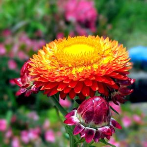 一歩一花🍀 ムギワラギク🌼🌸 キク科 ムギワラギク属 別名・ヘリクリサム テイオウカイザイク(帝王貝細工) 花言葉「決して消えることのない記憶」