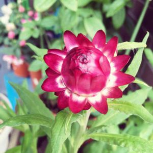 今日のお花、ヘリクリサムです。これはパステルローズ、帝王貝細工と呼ばれる、モンストローサの矮性品種です。