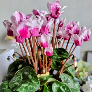 今季購入した、ガーデンシクラメン達です😊 pic2 マイクロゴールデンボーイ pic3 ドラゴン pic4 ゴブレット pic5 リリベル パープル