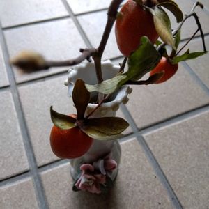 お久しぶりです。 冬になると、あまりにも変化がないのでサボっていました。 何となく老鴉柿を玄関に置いてみましたが…冴えない(笑)。 もう少し大きくしないと迫力が出ないですね。 食べる訳でもないので、実は取っちゃった方が良いのかな?