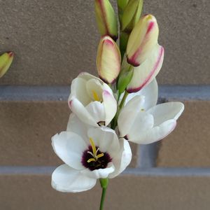 白いイキシアが咲きました❣️ 嬉しい〜😍🎉 この、白🤍にちょこっとピンク💟が入るのがほんとうに可愛いです😆✨👏