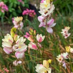 イキシア 昨年は翡翠色のビリディフローラだけ 育てたけど、今年はミックスの 球根を購入。 ヒョロヒョロな葉っぱから つぼみが出て来て花が咲く。 支柱とかの支えが必須💦 葉っぱは頼りない感じだから あっちこっちに下がっちゃう。 もうちょい育て易かったら 良いんだけどな…( -᷄ _ -᷅ )💭