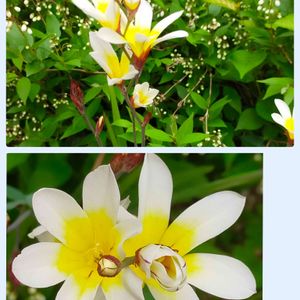 追伸 書籍図鑑にはイクシア GS図鑑ではイキシア・イキシャ 別名ヤリズイセン 寒い日が少なかったせいか、開花時期 も早く咲いてる。4/15 今夜は2枚目も 一歩外に出て駐車場の隅っこに アスファルト隙間から 芽生えていた名前の(?。?")植物 白色の花弁が名前知りたい花です。 この白い花はおそらく、階段上がったお宅の種が着床したのかな。!? ヒオウギみたいな感じでもなさそう チューリップや紫のアヤメ?菖蒲?が咲いてました 出かけ先の側にある市民花壇