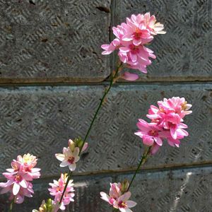 イキシア 針金のような細い茎にピンクのお花が、ユニークでかわいいです