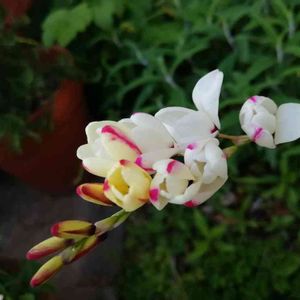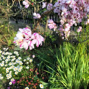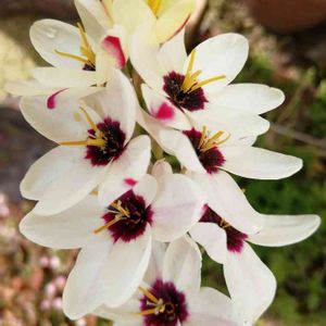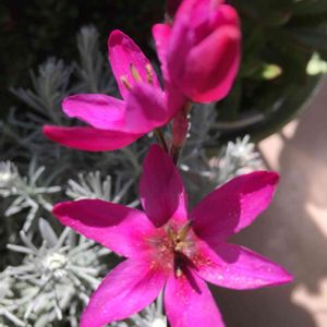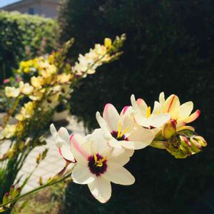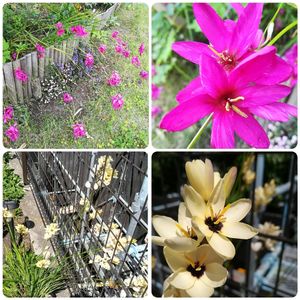 イキシア 左の白は、お一人様で15年以上近く毎年咲いてくれてました。 去年の秋にミックスの球根をそばに植えました。桃色二本、黄色一本が加わりました。 最初にミックスで植えたんですが、二、三年で白だけになってしまいました。 今回の中でどの色が残っていくんでしょうね。
