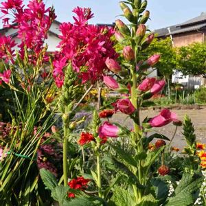 ジキタリスが咲き始めました。 後ろは 先日GSで教えて頂いたイキシア が満開です🎶