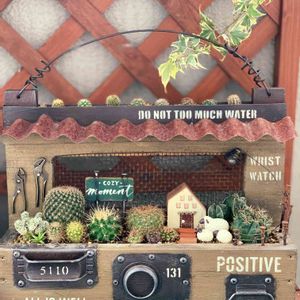 今日はお仕事お休み〜🎶 朝からスイッチ入ってサボ寄せ作りました😊 先日水崎園芸さんの素敵な新作木箱をお迎え💕 チビ11個と大3個のサボ🌵をサービスして くださったので後は我が家のサボ🌵と 雑貨をプラス😊 寄せ植え苦手ながらもなんとか完成😊 あるもんいっぱい使ったのでチグハグ感大😅 でも久しぶりの寄せ植えは楽しかった〜🎶