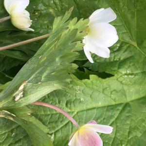 💚二人は、2輪草~💚 今日、国道を走っていたら、山側に白いものが。 車を降り見に行くと2輪草でした。とても清楚な花。 ひとつ、大発見! うすーいピンクの花もあったんです。 白は、花びらの裏も白 ピンクは、花びらの裏がピンク ずっと2輪草は、白オンリーと思ってましたが。 ちがいをpicしますね💚
