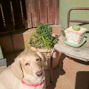 お腹いっぱいになったショコラくんと昨年挿し木したリオちゃん🌺