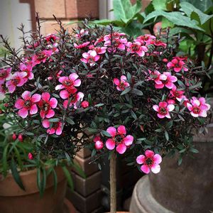カラー ティーツリー 名前は えーと タグ見てね スタンダード仕立てだから このピンクのお花が まあるく満開になるのね