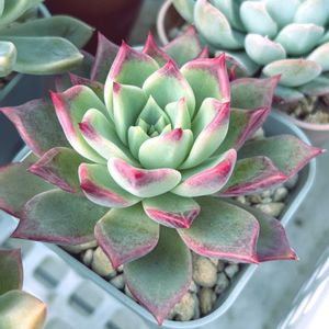 今年の6月にお迎えした100均多肉ちゃん💕 だいぶ大きくなりました🤗🎶 1枚目 ベンバディス 2枚目 ブルーサプライズ これからもっと色づいて可愛くなってくるといいなぁ🩷