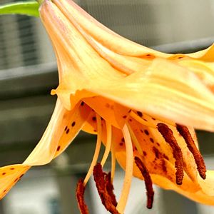 冷蔵庫でカビかけていた百合根を土に植えたら、2本新芽が出て、寒いのに咲き出しました🤗鮮やかな色で目を惹きますね🌿💕🌿