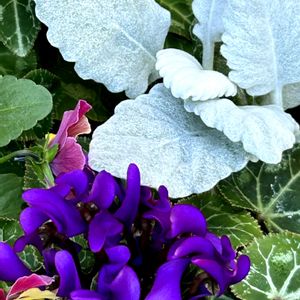 青いシクラメン ドラゴンを入れてシロタエギクやパンジーで寄せ植えを作りました🤗🌿💕🌿