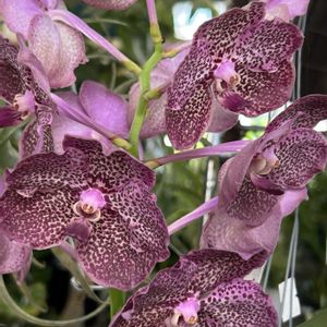 バンダ蘭-3種 今日の糸満道の駅にて、バンダの 花が満開しています。バンダの原産 地は東南アジアです。樹木などに太 い根を伸ばし、着生する蘭です。 花びらの濃い網目模様が豪華な雰囲 気を醸し出しています。(*´-`)❣️