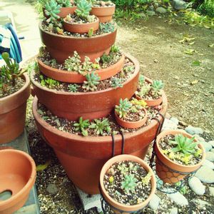 天気がいい。 日がないちにち 土いじり。 先日つくった多肉タワーに苗を植えました。 予算の都合もあって、ほとんどうちにあったものや、道ばたに生えていたセダムばかり。 スキマを多めにとってそれぞれが繁茂しやすいようにしてみました。 楽しみ楽しみ♪ (^3^)/