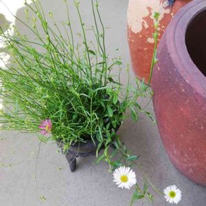 源平小菊🌼エリゲロン 🌿草花火の鉢に🌿耳かき草が入り、こぼれ種で🌼源平小菊🌼が咲いています 咲き始めはピンクで、後に白に変わります 大好き🍀😌🍀な花です