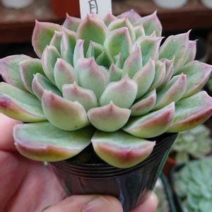 【エケベリア属 月影の宵】 Echeveria 'Tsukikage-no-yoi' 月影×魅惑の宵の交配種 和名 月影の宵 月影(エレガンス)の園芸種で、 葉色が明るいのが特徴との事 葉の縁取りが白く抜けて、 紅葉時には紅く色付くそうです 子を吹いて群生👶👶👶 しかし、今は密(蒸れ)が怖くて☔ ((( ;゚Д゚)))ガクガクブルブル 【秋草園(あきくさえん)】さん http://www013.upp.so-net.ne.jp/akikusaen/