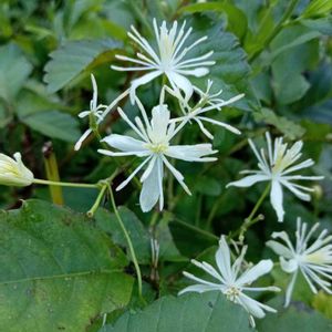 2022/08/26 ずっと毎日見て 調べて なんと決める? まだ決らない😫 ボタンヅルの雄蕊は萼とほぼ同じ長さだと・・・ センニンソウの雄蕊は萼より短い・そうなの? 葉っぱ・・・ボタンヅルは縁がギザギザ・・・ もう一度晴れたら確かめようと思います。 混じっているわけでも無いと思うのだけど・・・ 問題はお天気・・・ このpicだとセンニンソウかな?と思うのに、別のpicでは雄蕊が長く見える ・・・ センニンソウならばこの後フワフワに変化する蕊を目に出来るのだけど・・・