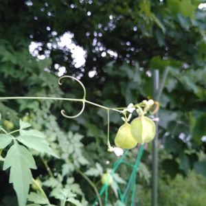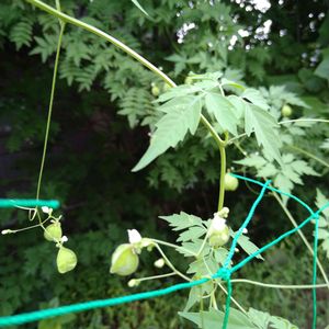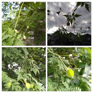 2022/08/23 先程のアップの答えは・・・ コレです。 昨年は、フウセンカズラは種撒いた苗でした。 壊れたワゴン? ラックの部材で育つ過程を観察していました。 勢い良かったら直ぐ上の山椒まで行けるかな? ・・・昨年は少し力不足でした。 私がちょっと心此処に在らずだったせいもあった🦆 今年はお野菜用の支柱立てました。 ネットも少し張って見ていました。 お盆期間中に少し放置していたら・・・ 山椒の枝の中を真っ直ぐ上の枝に向かう所まで来ていました😄👀✌️🙌 何ならユリノキまで行こうかな???