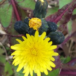 ノボロギクの綿毛🎵 先が黄色い子に やっと会えました。 綿毛になりたてなのでしょうね🤗 下に テントウちゃん🐞もいます😆