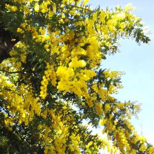 今日の花 ギンヨウアカシア 去年3月中旬、ジョイホン新田ボタニカルガーデン入口に咲いてました。 大木です❗️満開の時は黄色いフワフワに包まれる感じ🥰 見応えありますよ🎶 見応えありますよ😉