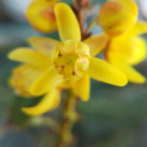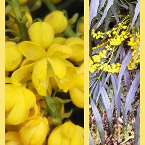 🌸ホソバヒイラギナンテン🌸 3・4年前から庭の隅に生えてきて、 花が咲くまで様子を見ていました! こんな黄色い花が咲いたので 調べて見ました💗 ホソバヒイラギナンテン で間違い無いですか? 葉の色はもっと深い緑色です。 完全なる日陰なんです😅 ブルーベリーのような実がなるとか! 抜かずに、置いといて良かった🤩