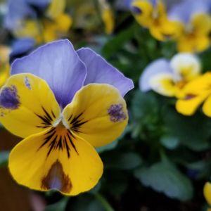 店先のビオラさん みんな美人で どのこにしようか迷っちゃう🥰 迷ったあげく 今日はこの色のビオラさんを選んでみました💛