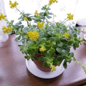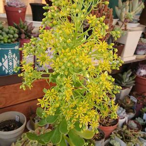 こんにちは❗ 黄色い花の多肉植物は、薄化粧と教えて頂きました😆⤴️ どうも有難うございます💓 お花が、とっても可愛かったので、株分けして頂きました。 すくすくと成長し蕾がついてます⤴️