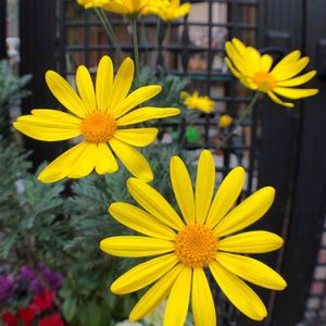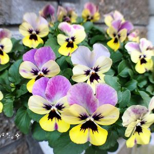 お散歩シリーズ🚶♀️🏃♂️🚶♀️🏃♂️ お散歩🚶♀️途中の寄せ植え💛💟 こんな感じの☘️色合わせ好きです。 どんな感じの人が寄せたのだろう。 想像するのも楽し💜