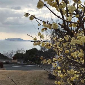 おはようございます😃 ロウバイの向こうは 瀬戸内海❣️ ロウバイは満開で 辺りに 香りが 漂ってました〜〜(*´꒳`*)