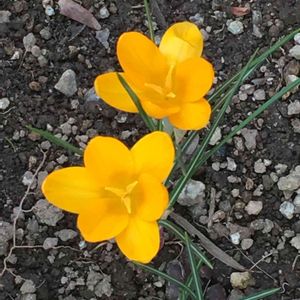 《クロッカス」》 いつ咲いてくれるかな?と待ち遠しかったクロッカスの黄色い花が、ようやく咲いてくれました🤗💛。 今朝、結構膨らんだ蕾を確認👀✨🌱。 昼前には開花してました🤗💕💕。 20年近く植えっぱなしの球根で、毎年春を知らせに土中からやってきてくれます😆🎶。
