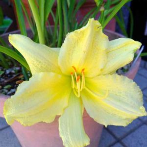 6月picのヘメロカリス アプリコットジャムの2番花が咲きました❣️ 丈が随分短くなっても、お花の大きさは変わりません🤗💕 1日で閉じますが、蕾が後2つ〜楽しみに待ってるよ🎶