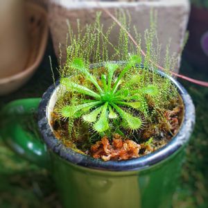 トウカイコモウセンゴケ🌿 ずいぶん久しぶりの登場になりました😌 冬の寒さと乾燥で葉っぱがほとんど駄目になってしまい、ずーっとラップを被せて養生していました😖 この株からできた子株たちは密閉されたコケリウムの中で元気にしていたので、親株も同じような環境にしてみました☺️ ラップを外してみたところ、だいぶ元気になってくれましたが… 謎の苔がヒョロヒョロと😲 このヒョロヒョロ苔は湿度が100%近くないといなくなっちゃうので、とりあえずそのままにしておきます😃 もしかしたら水中に適応するかも…?🤔