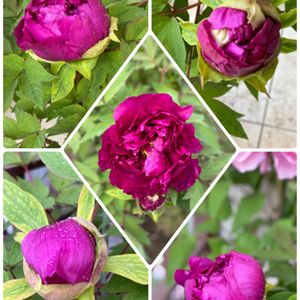 おはようございます☀ 今朝は金曜日の蕾たち🏷に参加させていただきます😊 時間が遡り、昨日開花した牡丹「島の藤」が開くまで。 開花の前のこの移ろいもまた優美✨ 時々刻々変化するので、こちらは2つのお花で表現しています(左上から時計回りで) 皆さま今日もよい一日を💜💜💜
