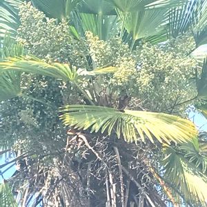 この木は、凄く高い所にあります。なので私の携帯では、撮るのがこれで限界です💦これ?お花ですよね?違うかな?近くで見てみたい。だけど高すぎて近くで見れない (<●>ω<●>)ジ- 朝から目を凝らして見ました。気になって仕方がない。視力が良くなっていそうな気がする。そして空高く見上げたので首の運動にもなってしまった(*´罒`*)♥ 調べました!シュロの木みたいです。同じ写真を見つけました。