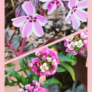🌸シバザクラ キャンディストライプ🌸 🌸スィートアリッサム🌸 シバザクラが暖かさでつい、咲いてしまったみたい! 少しだけど可愛いね💜 ̖́- スィートアリッサムの白では無いのもよく見れば可愛いな(๑♡∀♡๑)