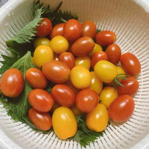 今日もいっぱい採れた🍅 甘くて美味しい! 青紫蘇もいっぱいなってて嬉しい🌱