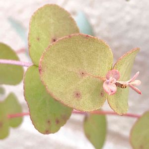 どなたか教えてください 南向きのベランダで育てているユーカリグ二ーに赤紫色のポツポツが… どうすればいいのでしょうか?